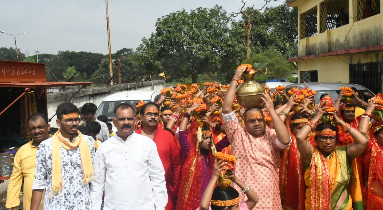 सार्वजनिक दुर्गा पूजा समिति छप्पन सेट के मुख्य संरक्षक आलोक कुमार दूबे,संरक्षक कपिल देव सिंह ,अध्यक्ष गौतम दुबे गोपी, सचिव रितेश सिंह, मनोज सिंह के नेतृत्व में पूर्वाहन 9:00 बजे भव्य कलश शोभा यात्रा निकल गई.