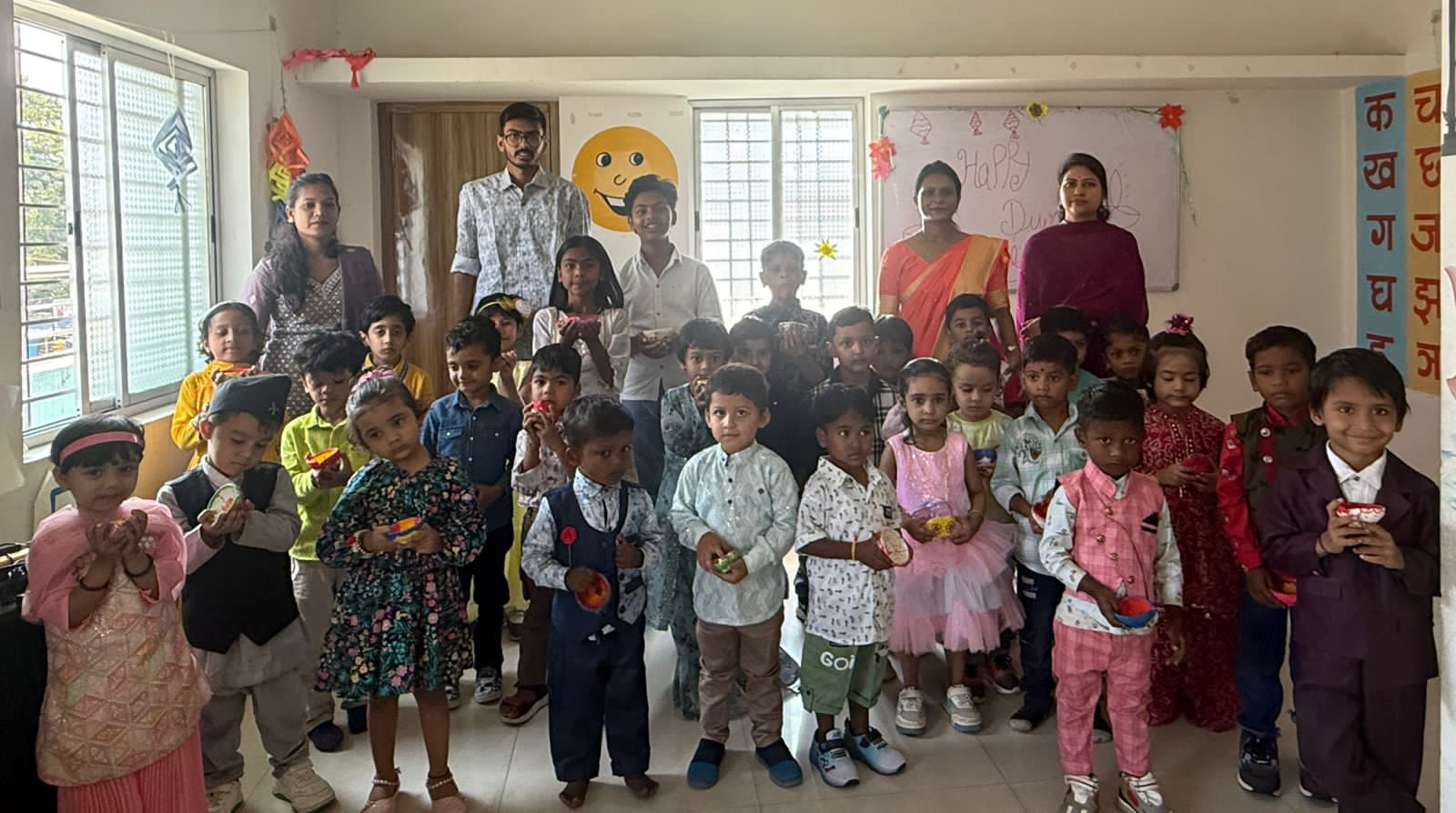 इस अवसर पर विद्यालय के डायरेक्टर मेहुल दूबे, शिक्षिकाएं आरती मिंज, मेघा बाखला और महिमा सिंह ने सभी बच्चों के बीच मिठाइयाँ, दीपक एवं उपहार वितरित कर दीपावली की शुभकामनाएँ दीं।