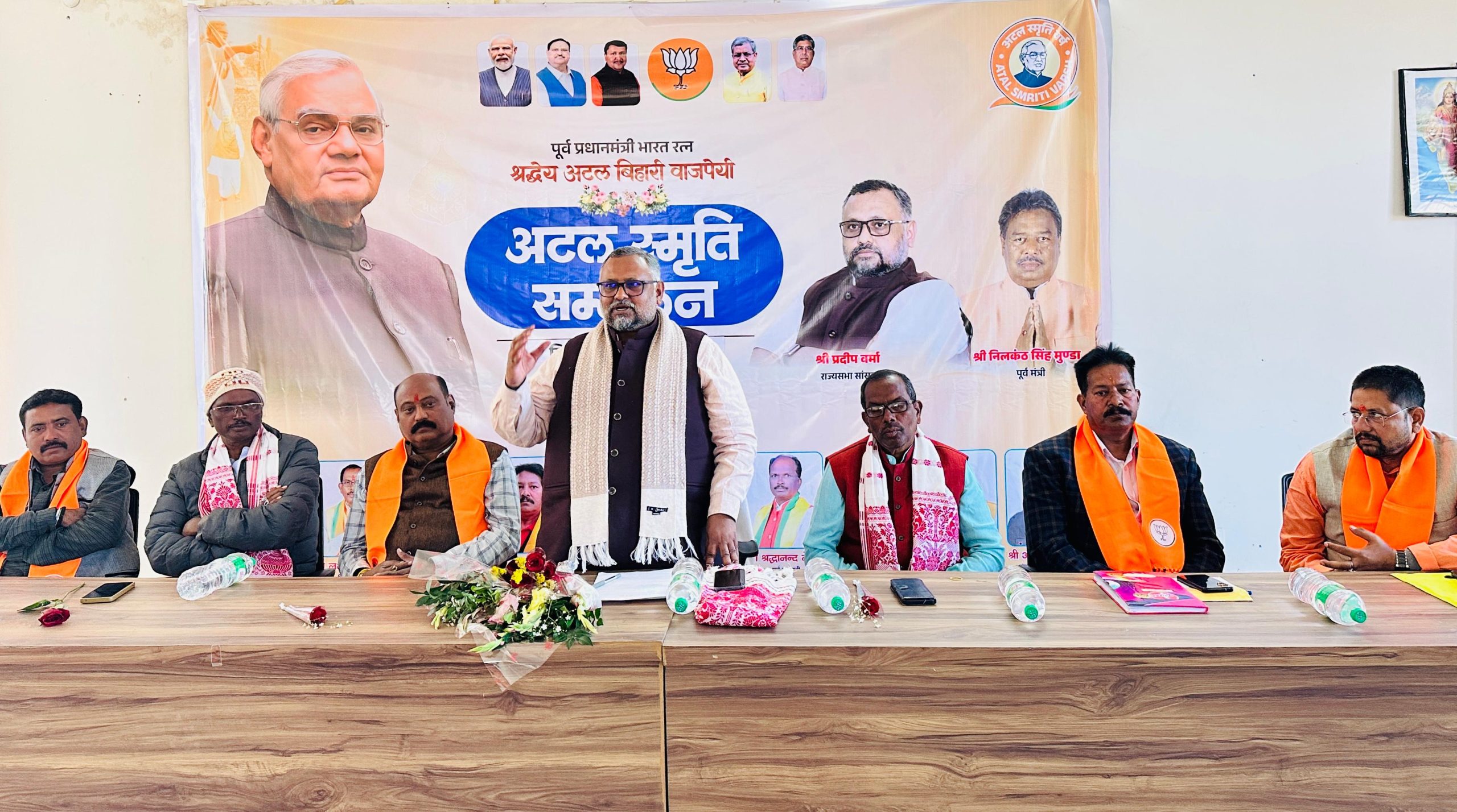 Simdega: झारखंड राज्य के निर्माता पूर्व प्रधानमंत्री भारत रत्न अटल बिहारी वाजपेयी की स्मृति में आयोजित अटल स्मृति समारोह का आयोजन श्रद्धा और विचार-चिंतन के वातावरण में संपन्न हुआ। समारोह में राज्यसभा सांसद डॉ. प्रदीप वर्मा मुख्य अतिथि के रूप में शामिल हुए और गोष्ठी को संबोधित करते हुए अटल जी के जीवन, व्यक्तित्व और राष्ट्र के प्रति उनके अविस्मरणीय योगदान पर विस्तार से प्रकाश डाला।