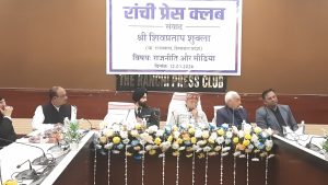 Ranchi: हिमाचल प्रदेश के राज्यपाल शिवप्रताप शुक्ला ने आज रांची प्रेस क्लब में “राजनीति और मीडिया” विषय पर आयोजित संवाद कार्यक्रम में पत्रकारों से विचार साझा करते हुए कहा कि लोकतंत्र में राजनीति और मीडिया के बीच परस्पर पूरक संबंध है। दोनों की भूमिकाएं एक-दूसरे से जुड़ी हुई हैं और दोनों का अंतिम लक्ष्य राष्ट्रीय हितों के प्रति प्रतिबद्धता होना चाहिए।