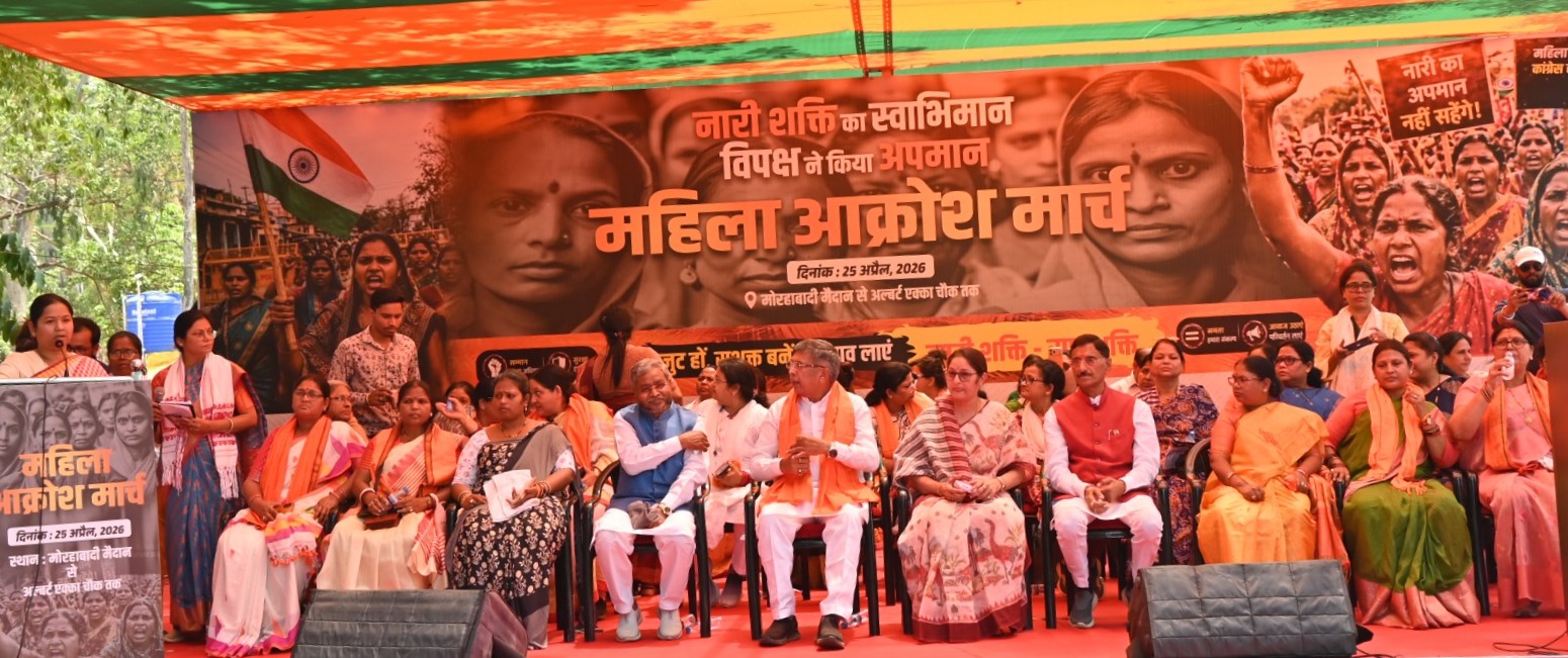 Ranchi: नारी शक्ति वंदन अधिनियम’ यानी महिला आरक्षण बिल का संसद में विरोध करने पर इंडी गठबंधन के खिलाफ आज रांची में महिलाओं का गुस्सा सड़कों पर फूट पड़ा। केंद्रीय मंत्री अन्नपूर्णा देवी के नेतृत्व में हजारों महिलाओं ने ‘महिला आक्रोश मार्च’ निकाला। चिलचिलाती गर्मी के बावजूद मोरहाबादी मैदान से अल्बर्ट एक्का चौक तक निकली इस पदयात्रा में मातृशक्ति ने इंडी गठबंधन को सीधी चुनौती दी। इस दौरान मोराबादी में सभा को भाजपा के तमाम वरिष्ठ नेताओं ने संबोधित किया।